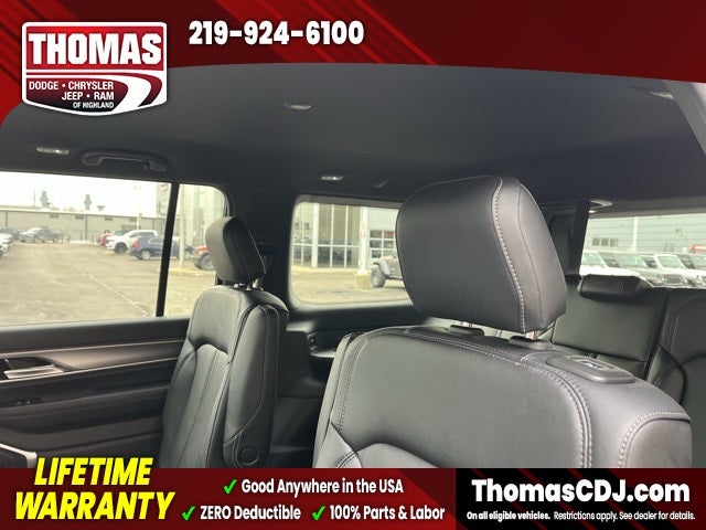 With seating for up to seven, including a versatile third-row bench, the Grand Wagoneer is perfect for family road trips and carpools. The spacious interior, featuring Global Black leather upholstery, provides ample room for everyone, while the power liftgate and cargo tie downs facilitate easy loading for all your gear—whether it's sporting equipment, picnic supplies, or camping essentials.