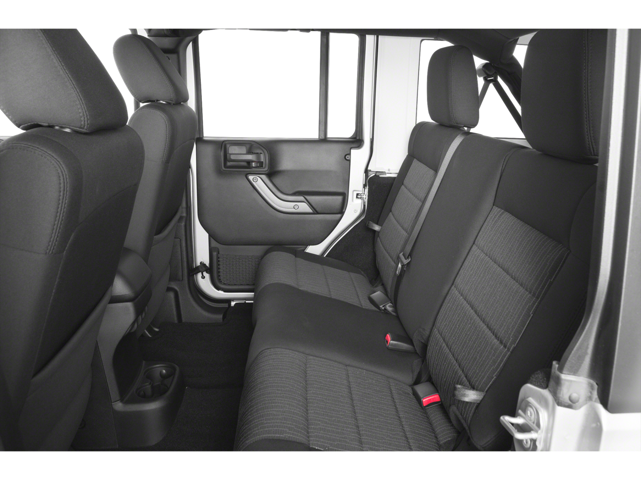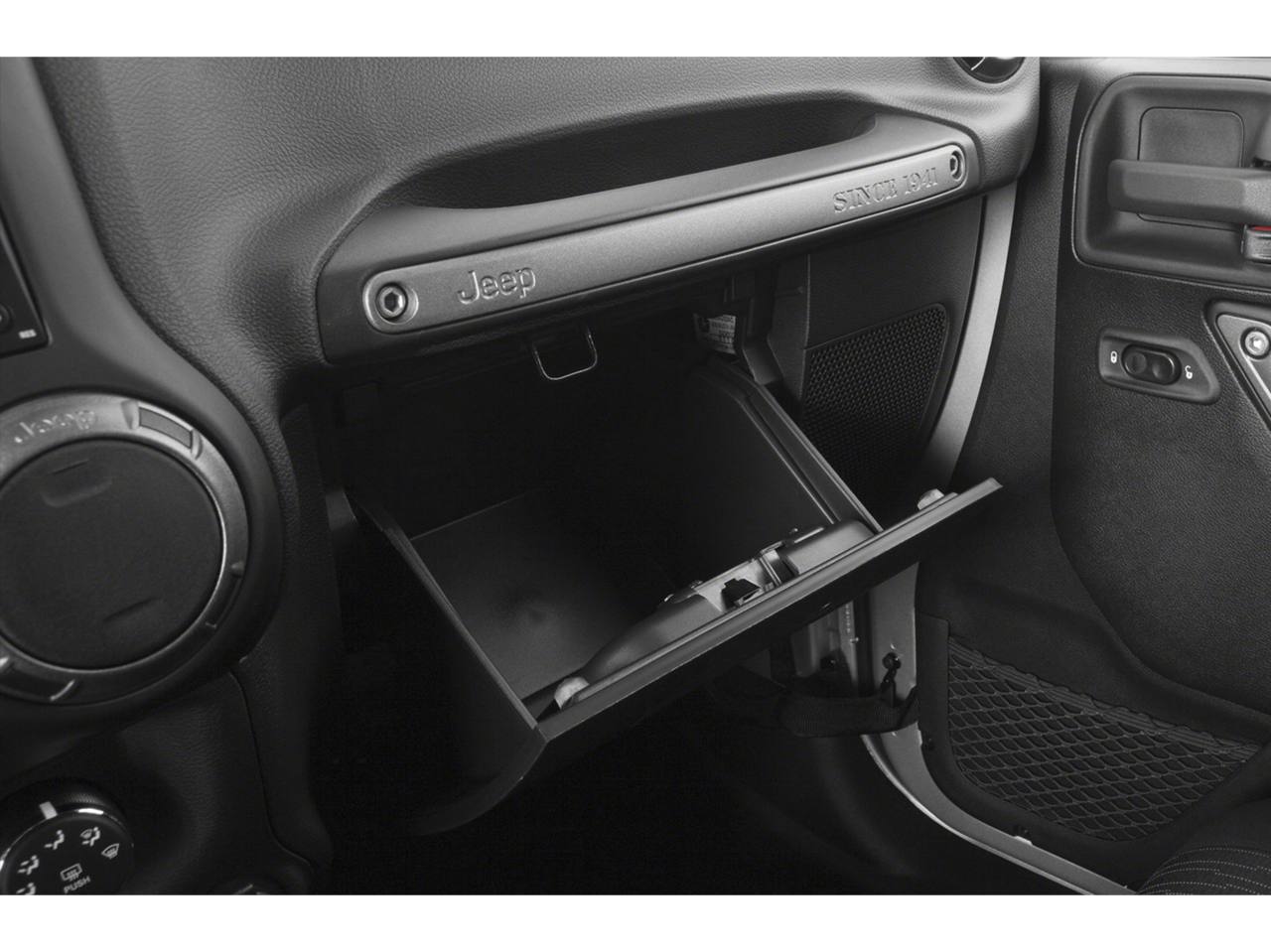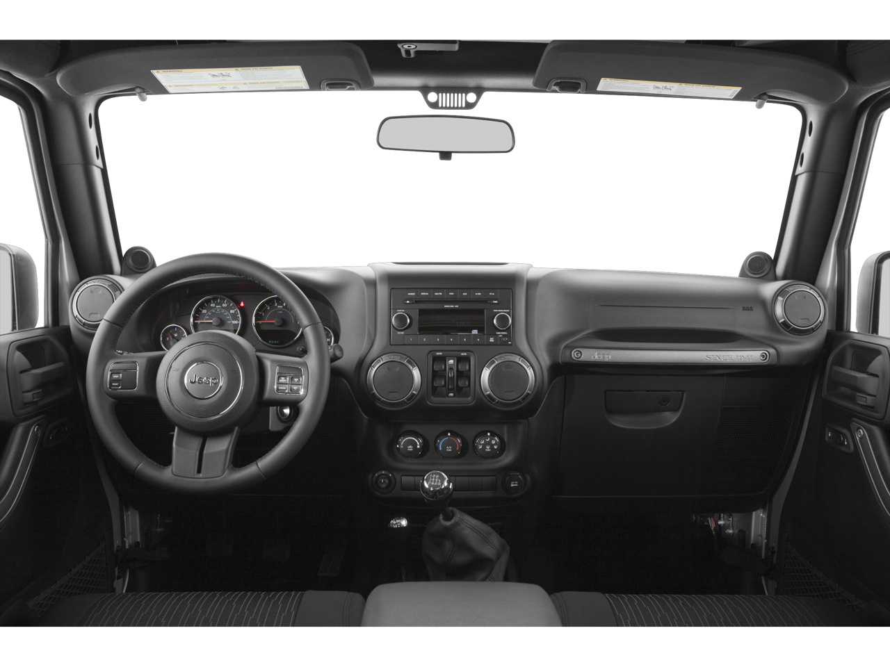 The Cloth Seats with Adjustable Head Restraints offer a comfortable and supportive ride, while the Manual climate control allows you to maintain your preferred temperature. The Power Convenience Group includes Power door locks with 2 stage unlocking and Power door mirrors for added convenience. The Remote Keyless Entry provides easy access to the vehicle. The Leather Wrapped Steering Wheel adds a touch of refinement to the interior. The Front Bucket Seats offer individual comfort, and the Front Center Armrest w/Storage provides a convenient place to store your belongings. With Cloth front seat upholstery in Black, the interior is both stylish and durable. The Folding rear seats offer versatility for carrying cargo, and the Locking floor console storage provides secure storage for valuables. Whether you're running errands in La Porte, Indiana, or embarking on a road trip, this Wrangler offers a comfortable and functional interior.