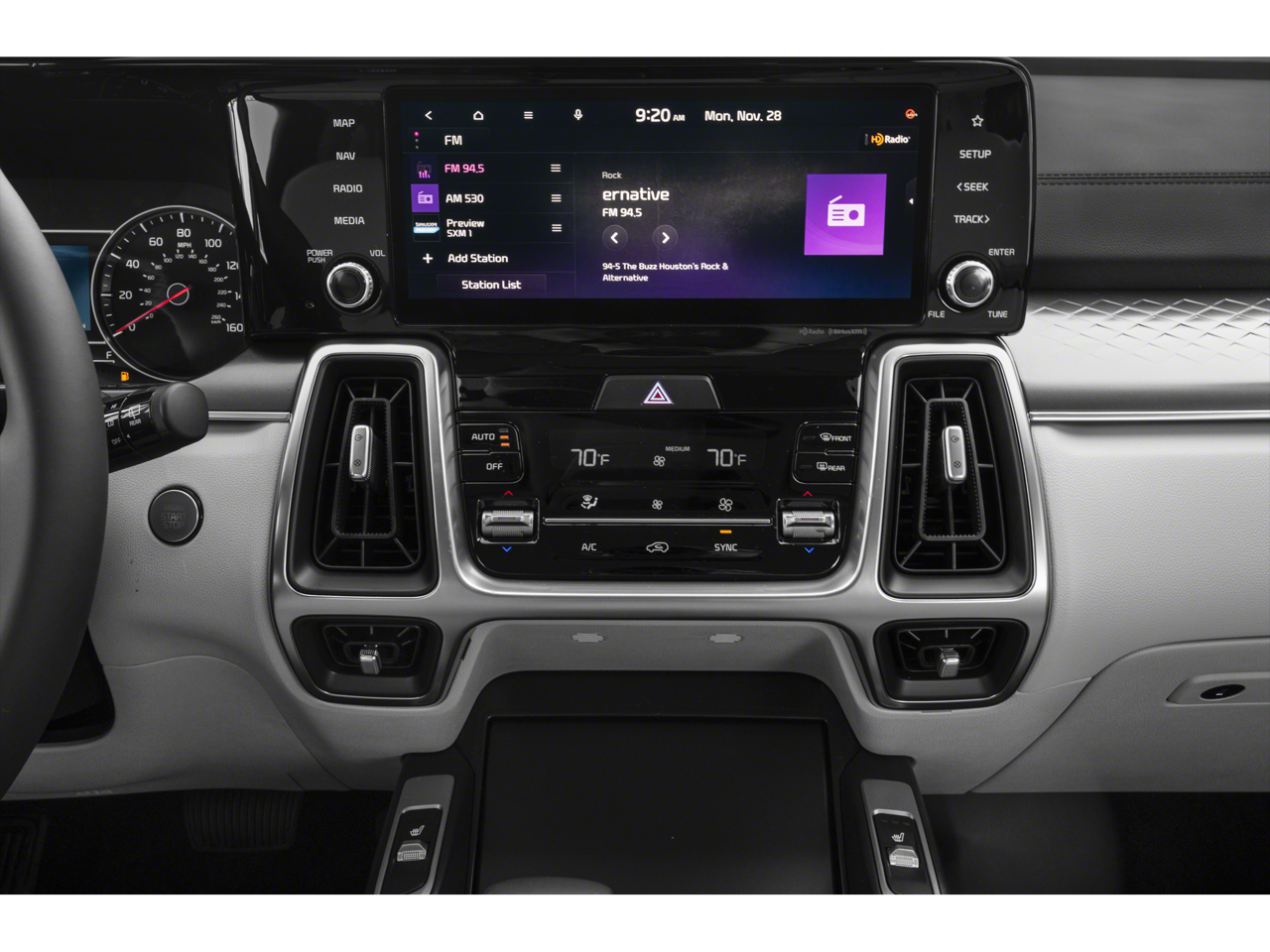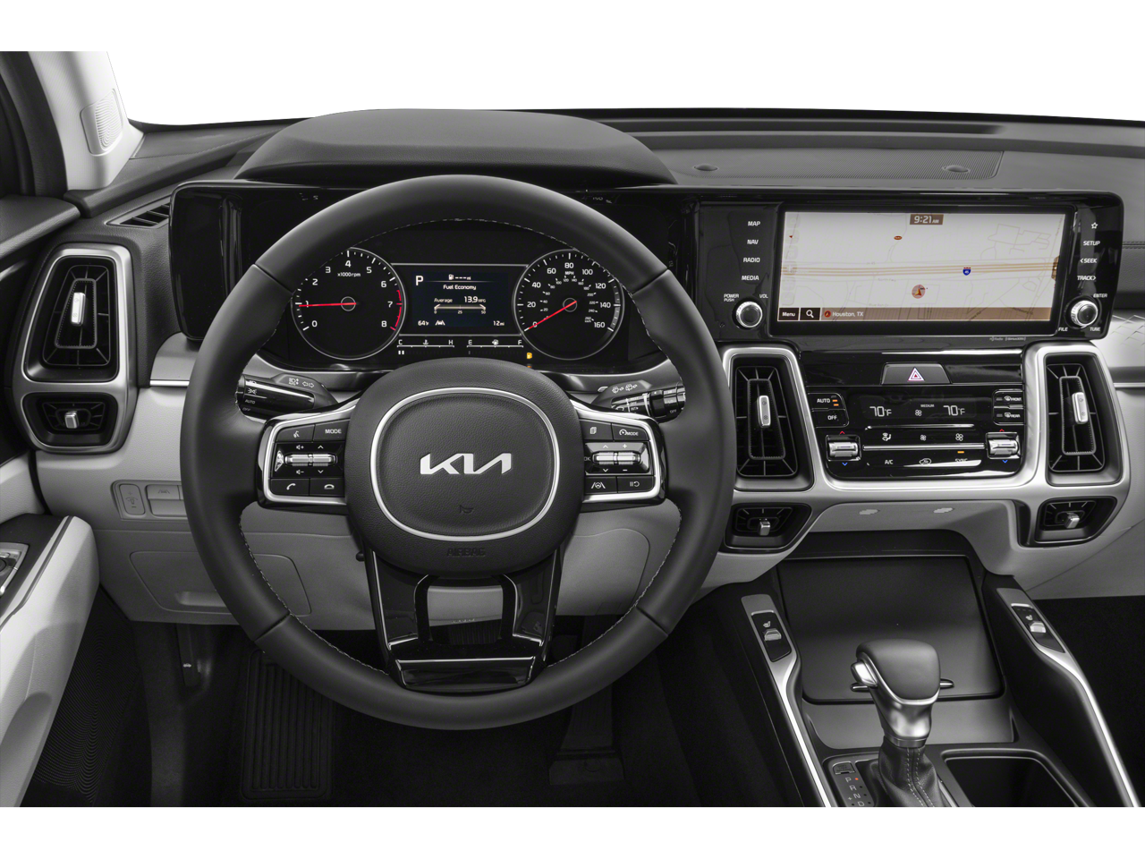 Slip behind the wheel and discover the Sorento's refined interior, where premium materials and thoughtful design create an inviting atmosphere. Enjoy the convenience of dual-zone automatic climate control, the connectivity of Apple CarPlay® and Android Auto™, and the added security of the Smart Key with Push-Button Start and Remote Start. The Panoramic Sunroof Package floods the cabin with natural light, enhancing your sense of openness and freedom.