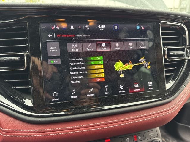 One Owner, AWD, 1 USB Charging Port in Console, 12V Auxiliary Power Outlet In Console, 19 harman/kardon Amplified Speakers w/Subwoofer, 2 Pc Brembo Front Rotor Brakes, 3rd Row Floor Mat & Full Console, 3rd row seats: split-bench, 7 & 4 Pin Wiring Harness, 825 Watt Amplifier, Adaptive Cruise Control w/Stop, Adaptive suspension, Advanced Brake Assist, Alloy wheels, Apple CarPlay/Android Auto, Auto High-beam Headlights, Auto-dimming door mirrors, Automatic temperature control, Black Package, Black Roof Rails, Blind Spot w/Trailer Detection, Class IV Receiver Hitch, Compass, Eclipse Black Exhaust Tips, Forged Carbon Fiber Interior Accents, Front dual zone A/C, Full Speed Forward Collision Warning Plus, Fully automatic headlights, Gray Metallic Badges, Heated door mirrors, Heated front seats, Heated rear seats, Heated steering wheel, High Performance Laguna Leather Seats, Illuminated Rear Cupholders, Integrated Roof Rail Crossbars, Lane Departure Warning Plus, Leather Shift Knob, Leather steering wheel, Leather Trimmed Bucket Seats, Memory seat, Navigation system: TomTom, Outside temperature display, ParkView Rear Back-Up Camera, Power door mirrors, Power driver seat, Power Liftgate, Power passenger seat, Power Sunroof, Premium Instrument Panel, Quick Order Package 29N SRT 392 Premium, Radio: Uconnect 5 Nav w/10.1 Display, Red Seat Belts, Satin Black Dodge Tail Lamp Badge, Security system, Spoiler, Suede Headliner, Trailer Brake Control, Wheels: 20 x 10 Lights Out Aluminum.